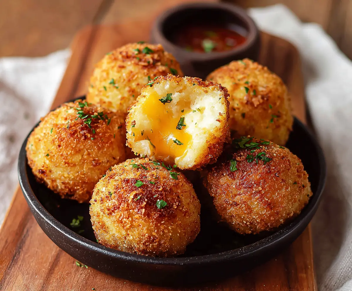 If desired, sprinkle with chopped parsley for a fresh touch. Serve the cheesy mashed potato balls warm with your favorite dipping sauce. Enjoy your delightful bites that are sure to please!