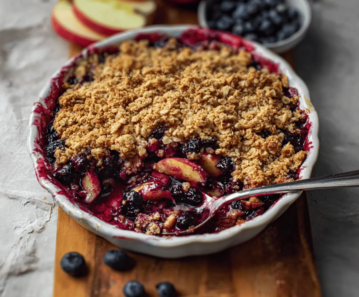 This Apple Blueberry Crisp is a warm and fruity dessert that brings joy to any table! With juicy apples and sweet blueberries topped with a crunchy oat mixture, it’s hard to resist.