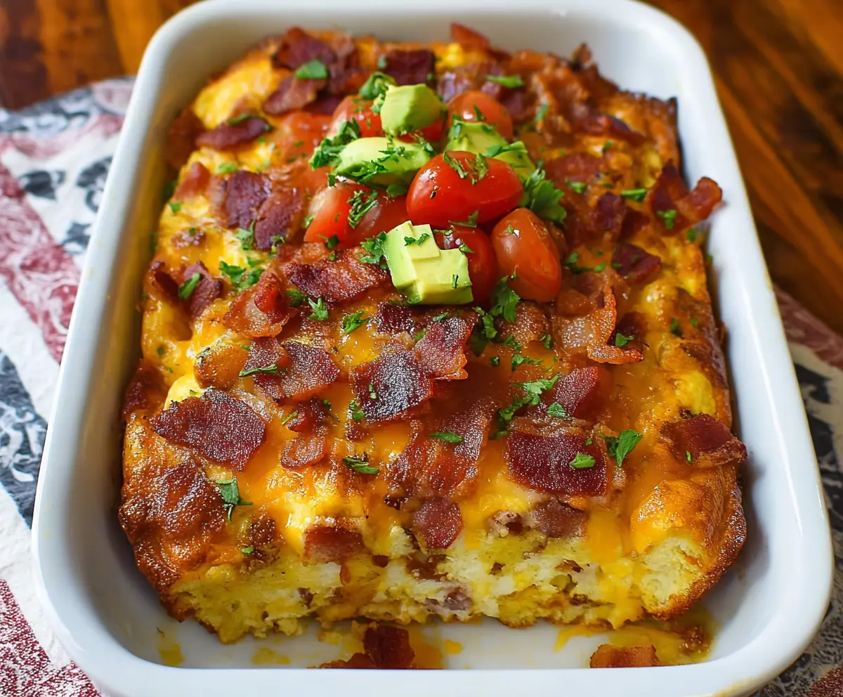 This Bacon Breakfast Casserole is a warm and hearty dish, perfect for starting your day. With layers of crispy bacon, fluffy eggs, and cheese, it’s a breakfast dream!