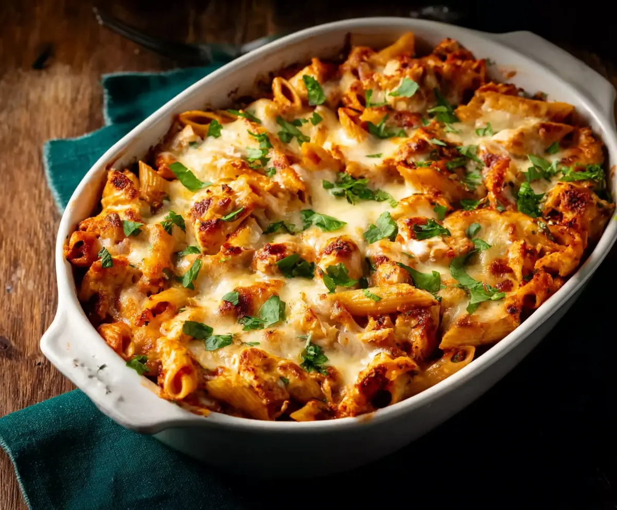 This Baked Chicken Mozzarella Pasta is a comforting dish with juicy chicken, pasta, and melty mozzarella cheese. It’s like a warm hug on your plate!