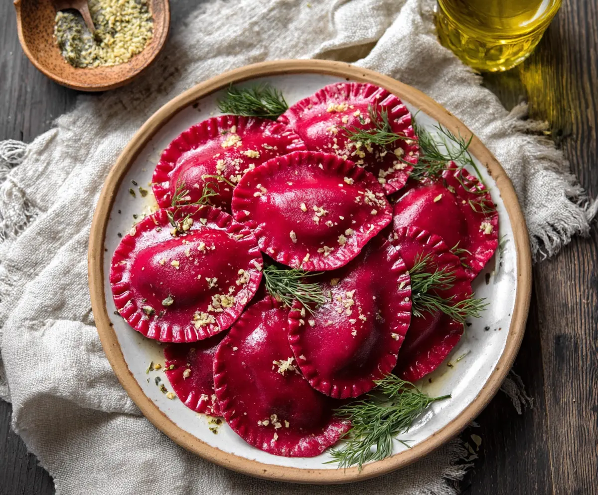 Beet ravioli is a colorful and tasty dish that combines sweet roasted beets with creamy filling, all tucked inside soft pasta. It’s like a little gift on your plate!