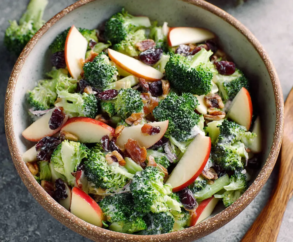Your Broccoli Apple Salad is now ready to serve! Enjoy it chilled as a refreshing side dish that balances crisp freshness with sweet and savory notes. It’s sure to be a delightful addition to any meal!