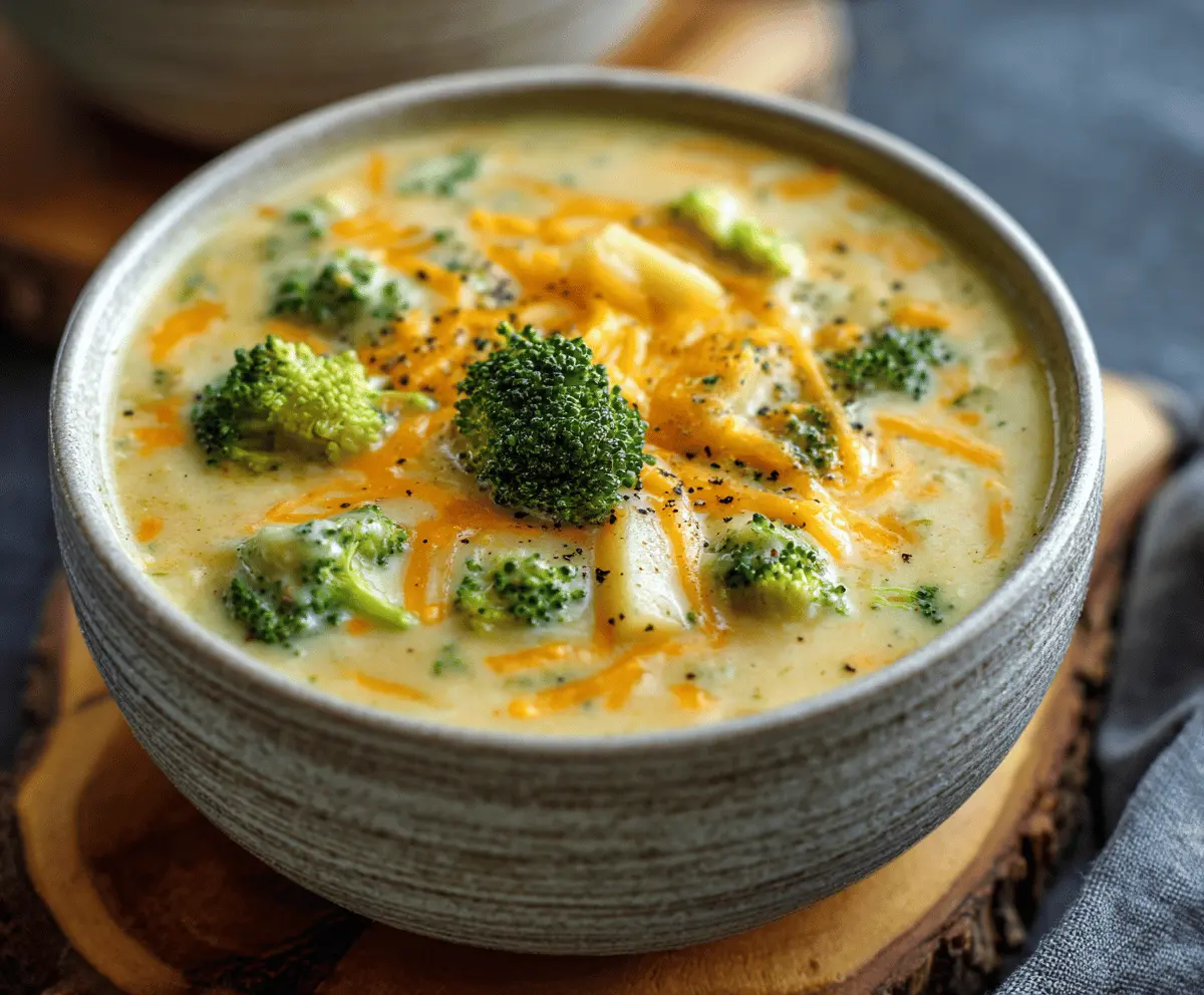 This soup is creamy, cheesy, and packed with tender broccoli and potatoes—a perfect cozy meal!