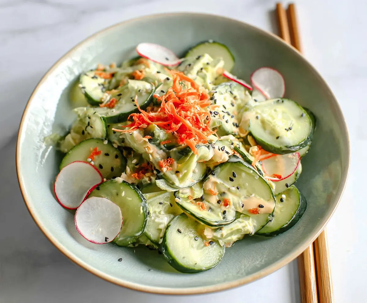 Enjoy your light and refreshing California Roll Cucumber Salad, inspired by classic sushi roll flavors!