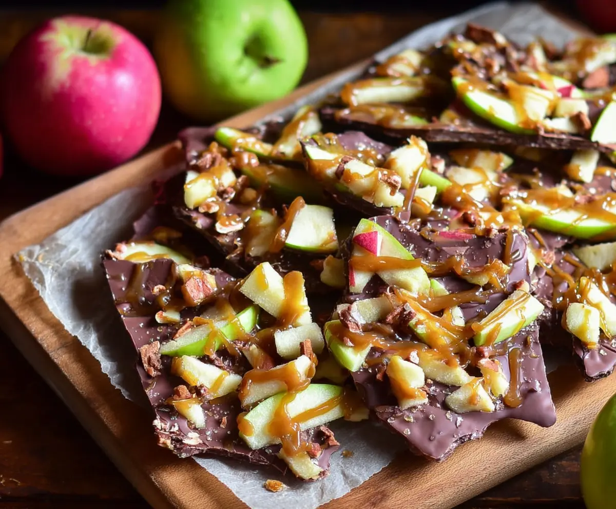 Enjoy your sweet and crunchy Caramel Apple Bark! This treat combines crisp apples, buttery caramel, and rich chocolate—perfect for any occasion!
