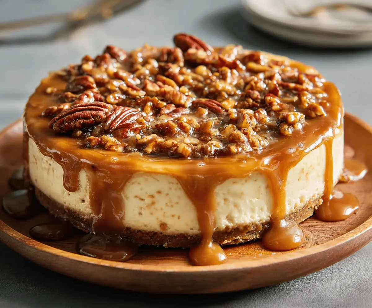 This Caramel Pecan Cheesecake is a sweet dream! With creamy cheesecake and crunchy pecans topped with rich caramel, it’s a treat you won’t forget.