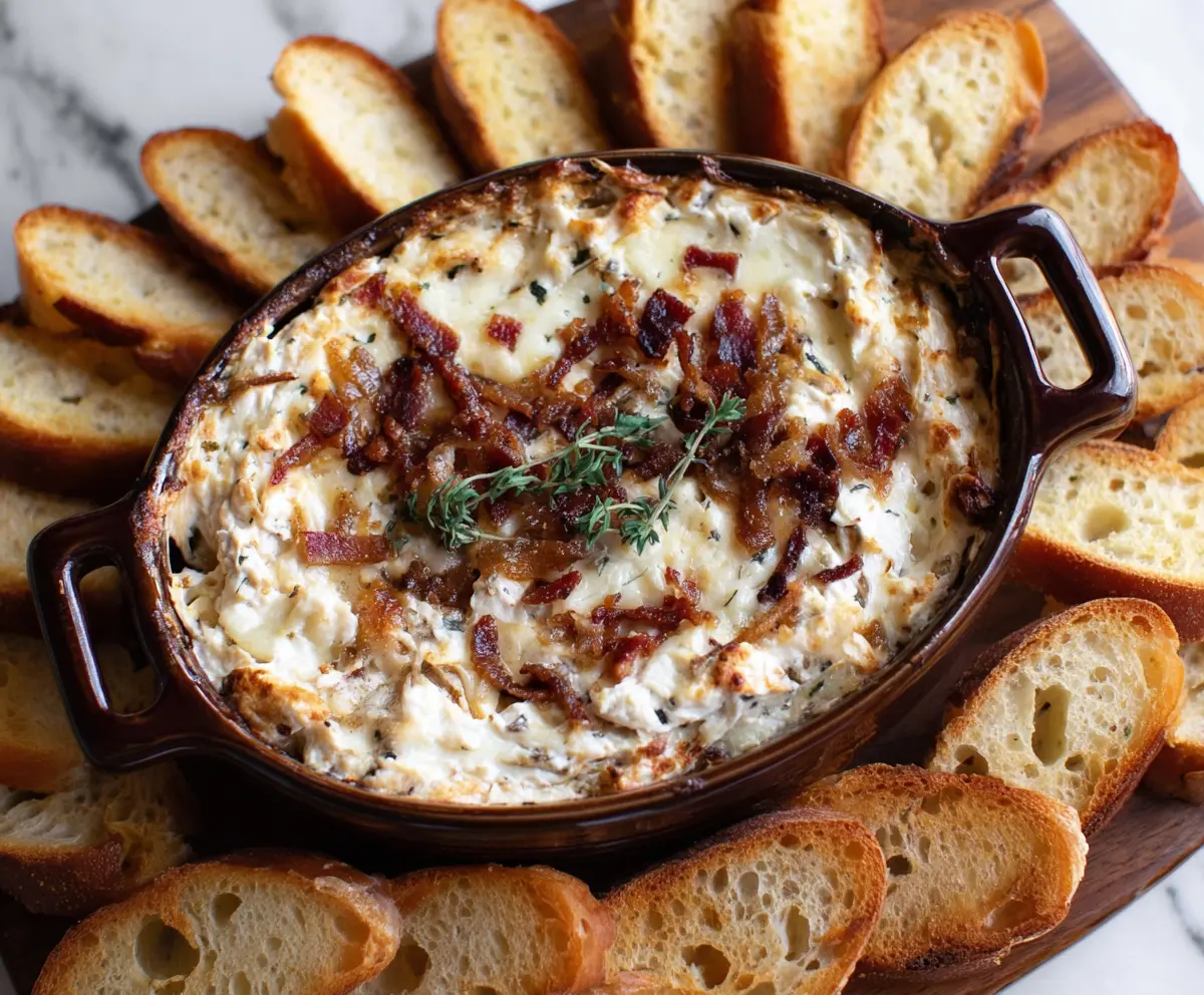 Enjoy every creamy, savory bite of this Caramelized Onion and Bacon Dip—it’s sure to be a hit!