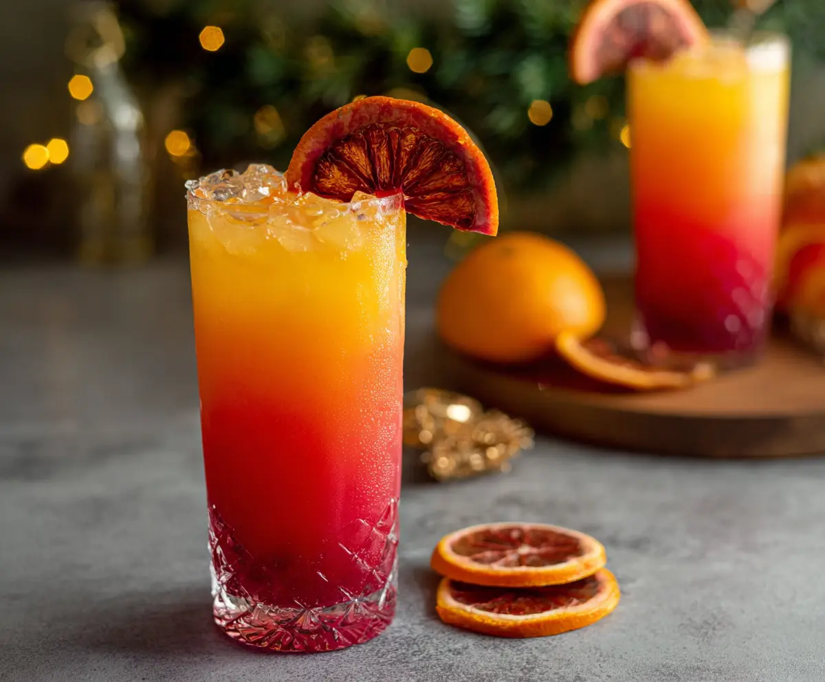 The Christmas Tequila Sunrise is a fun twist on the classic drink, perfect for the holiday season! It combines smooth tequila, zesty orange juice, and a splash of cranberry juice for festive color.