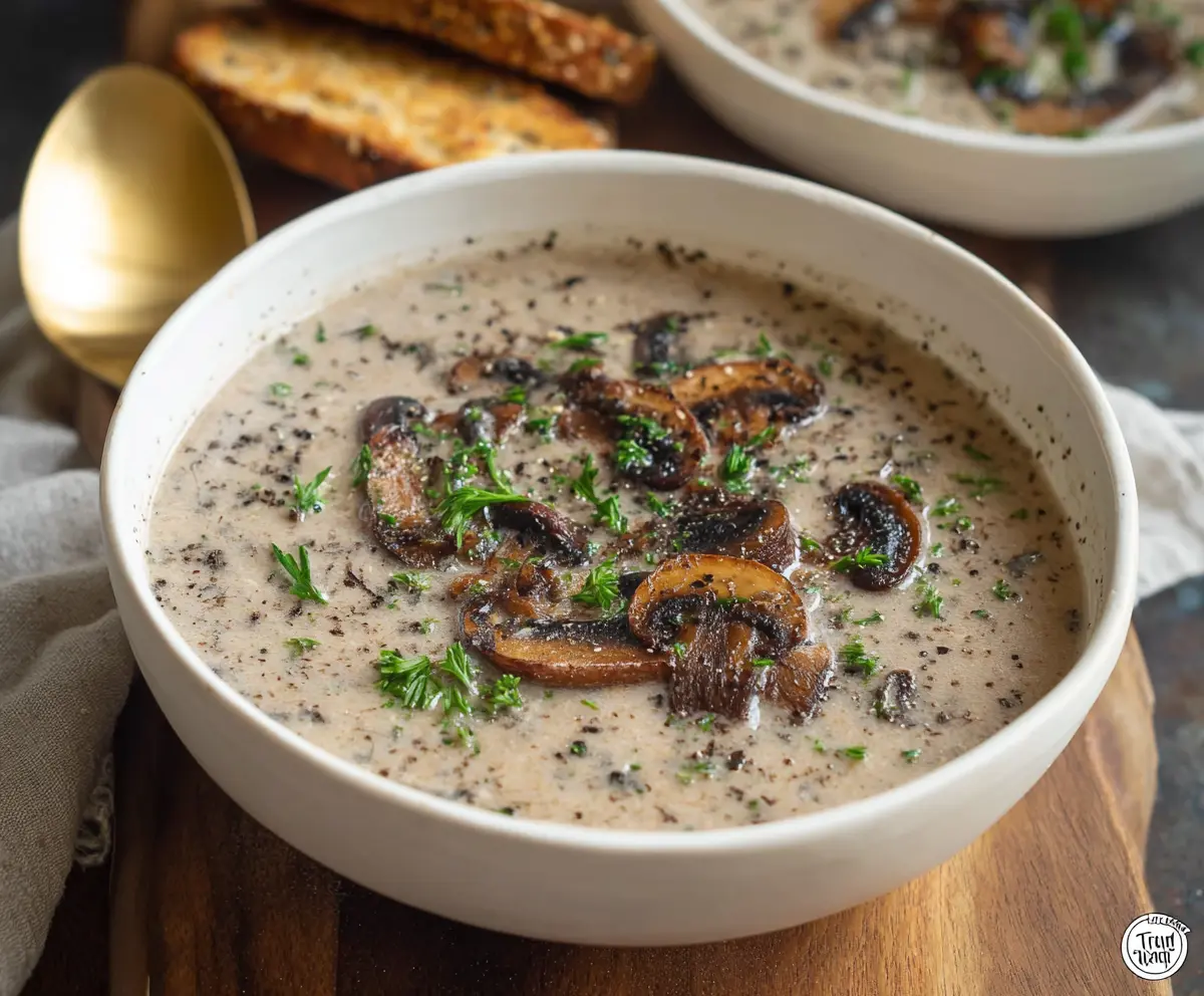 Serve the soup hot in bowls, and if you like, add a dollop of sour cream or Greek yogurt on top for an extra creamy touch. Finish with a sprinkle of fresh parsley to brighten it up. Enjoy your hearty, comforting mushroom soup!