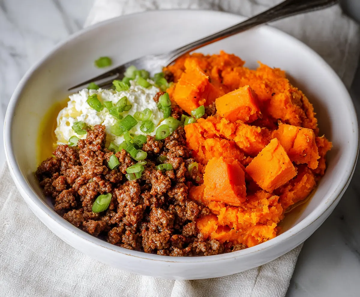 This Cottage Cheese Sweet Potato Beef dish mixes creamy cottage cheese with sweet potatoes and juicy beef. It’s super hearty and comforting for any meal!