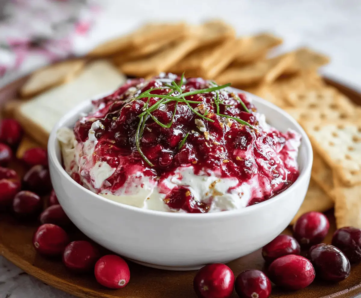 This Cream Cheese Cranberry Dip is a perfect mix of creamy and tangy flavors. It combines smooth cream cheese with sweet-tart cranberries for a tasty treat!