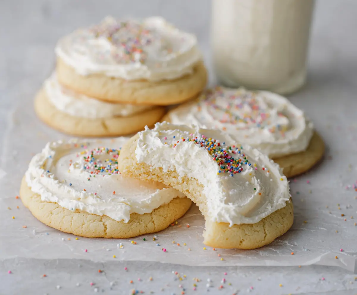 Enjoy your delightful Crumbl Vanilla Sugar Cookies with their creamy frosting and colorful sprinkles! They’re perfect for sharing or indulging all by yourself! 🍪✨