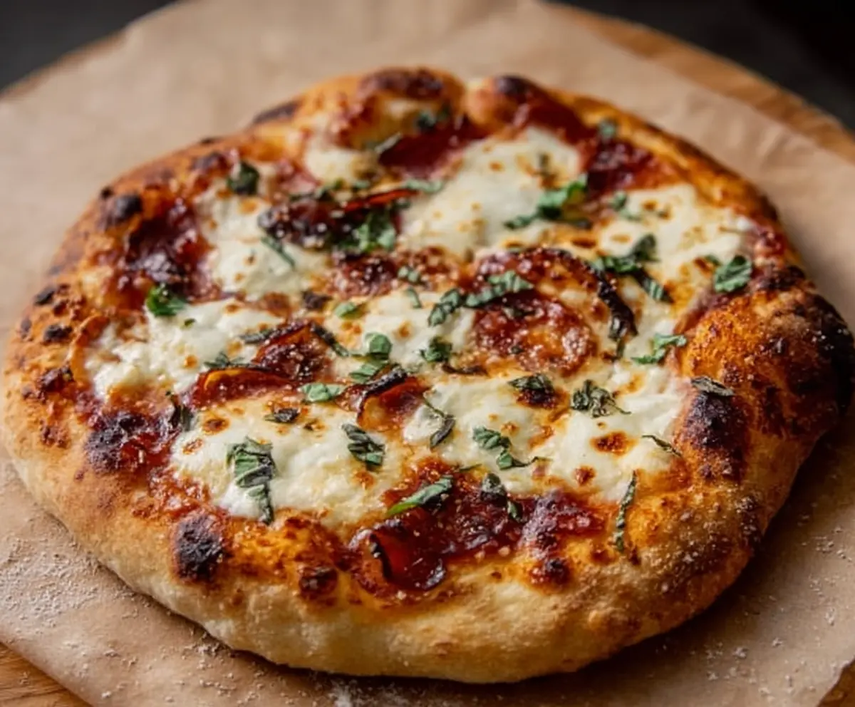 This crusty sourdough pizza is a real treat! With a crispy, golden crust and a soft, chewy inside, it’s the perfect base for your favorite toppings.