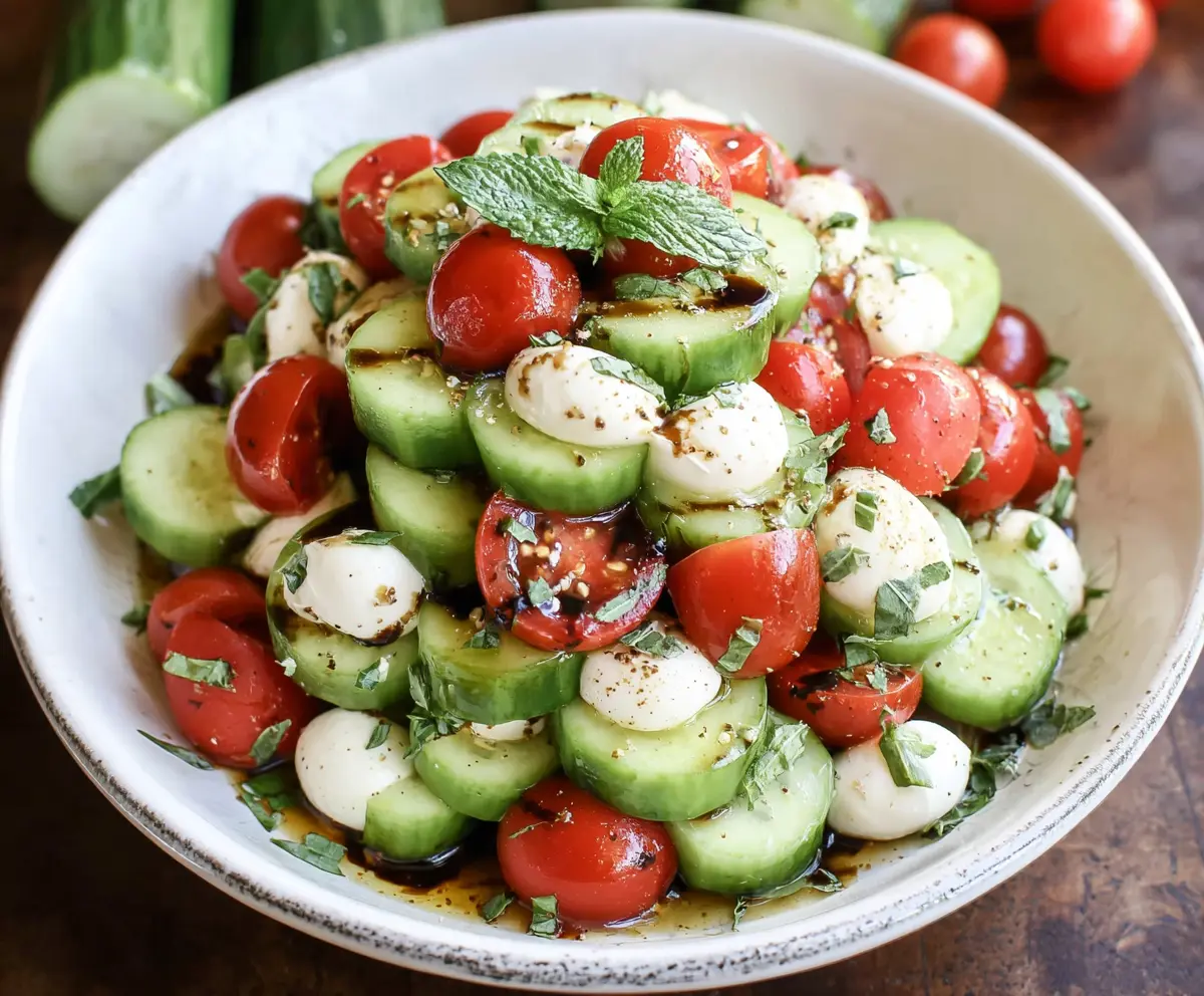 This refreshing Cucumber Caprese Salad mixes crispy cucumbers, juicy tomatoes, and creamy mozzarella. Drizzled with a bit of olive oil and fresh basil, it’s a burst of flavor!