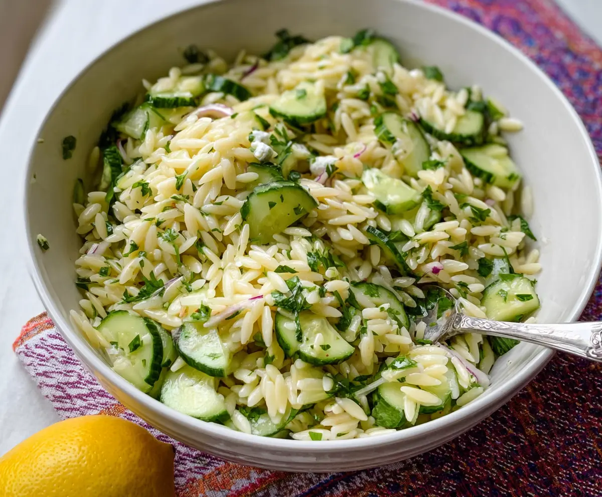 This Cucumber Lemon Orzo Salad is fresh and easy to make! With bright cucumber, zesty lemon, and tender orzo, it’s perfect for a light lunch or as a side dish.