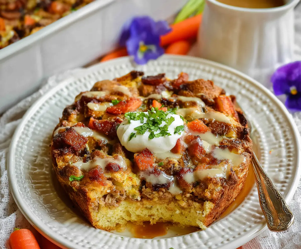This Easter Breakfast Bake is a festive delight! It features layers of fluffy eggs, bread, and colorful veggies, making it both tasty and cheerful for the holiday table.