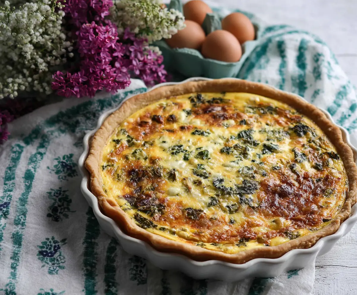 Slice your quiche and serve it warm or at room temperature. Enjoy this delightful quiche as a centerpiece for your Easter brunch with friends and family!