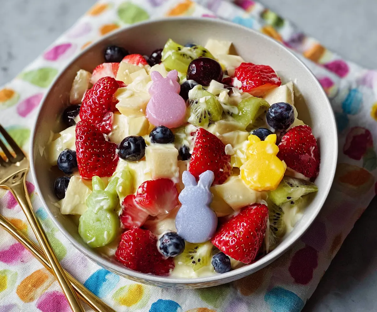 This colorful and creamy Easter Fruit Salad is a delightful mix of fresh berries and tropical flavors, topped off with a sweet yogurt dressing and festive garnishes. Enjoy your creation!