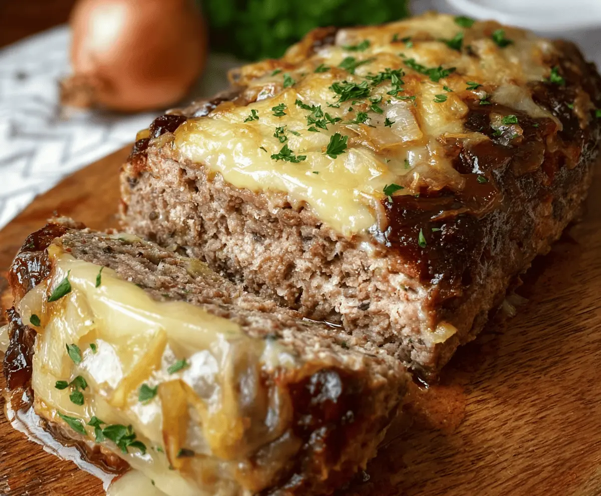 Garnish with freshly chopped parsley and serve it up with any extra caramelized onions or glaze. This French Onion Meatloaf pairs wonderfully with mashed potatoes, green beans, or a fresh salad for a complete meal.