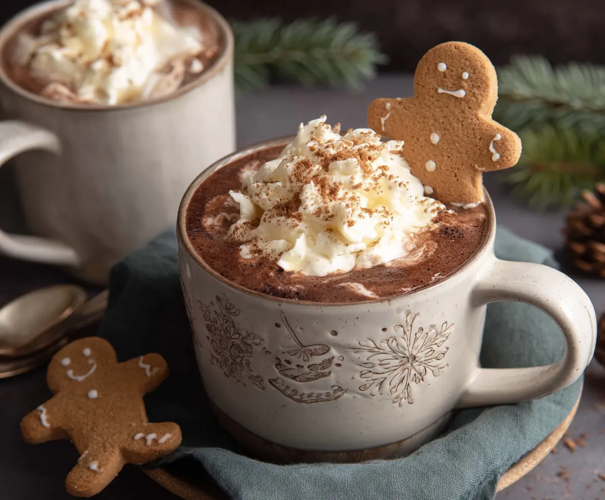 Pour the warm gingerbread hot chocolate into mugs. Top it off generously with whipped cream because who doesn’t love that? Then, sprinkle some grated chocolate or a pinch of cinnamon for garnish. Finally, add a gingerbread cookie on the side for a delightful finishing touch.