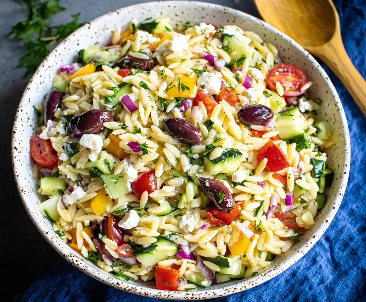 This Greek Orzo Salad is a colorful dish packed with flavor! It features tender orzo pasta, fresh veggies, and a zesty dressing that ties everything together perfectly.