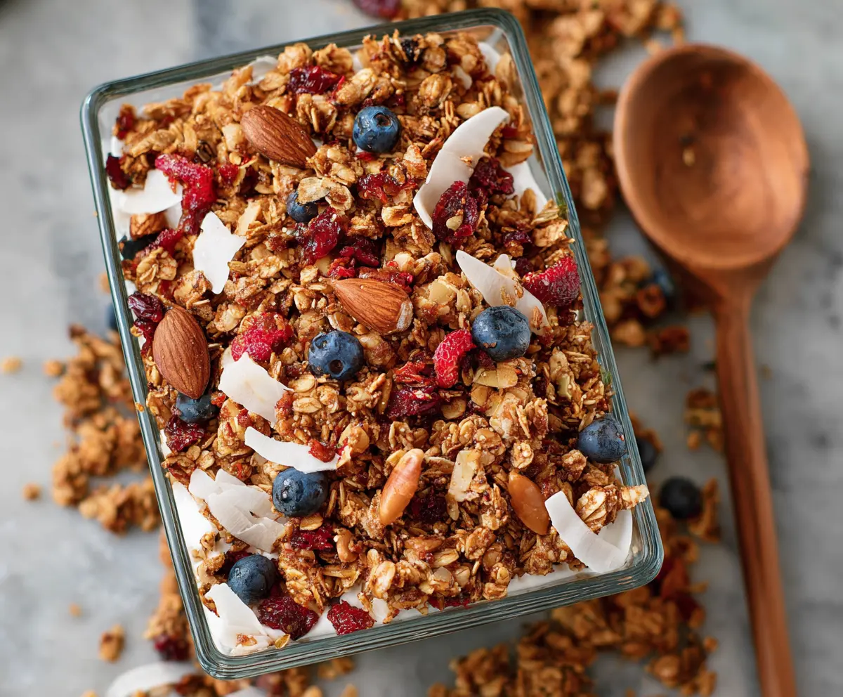 This Healthy Granola is a tasty mix of oats, nuts, and honey that makes breakfast fun and easy! It’s crunchy, sweet, and packed with energy to start your day right.