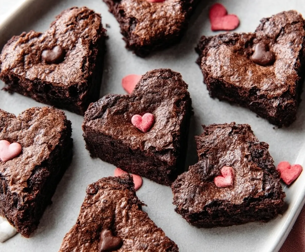 This recipe yields tender, fudgy brownies with a rich chocolate flavor, cut into charming heart shapes perfect for gifting or a special treat. Enjoy!