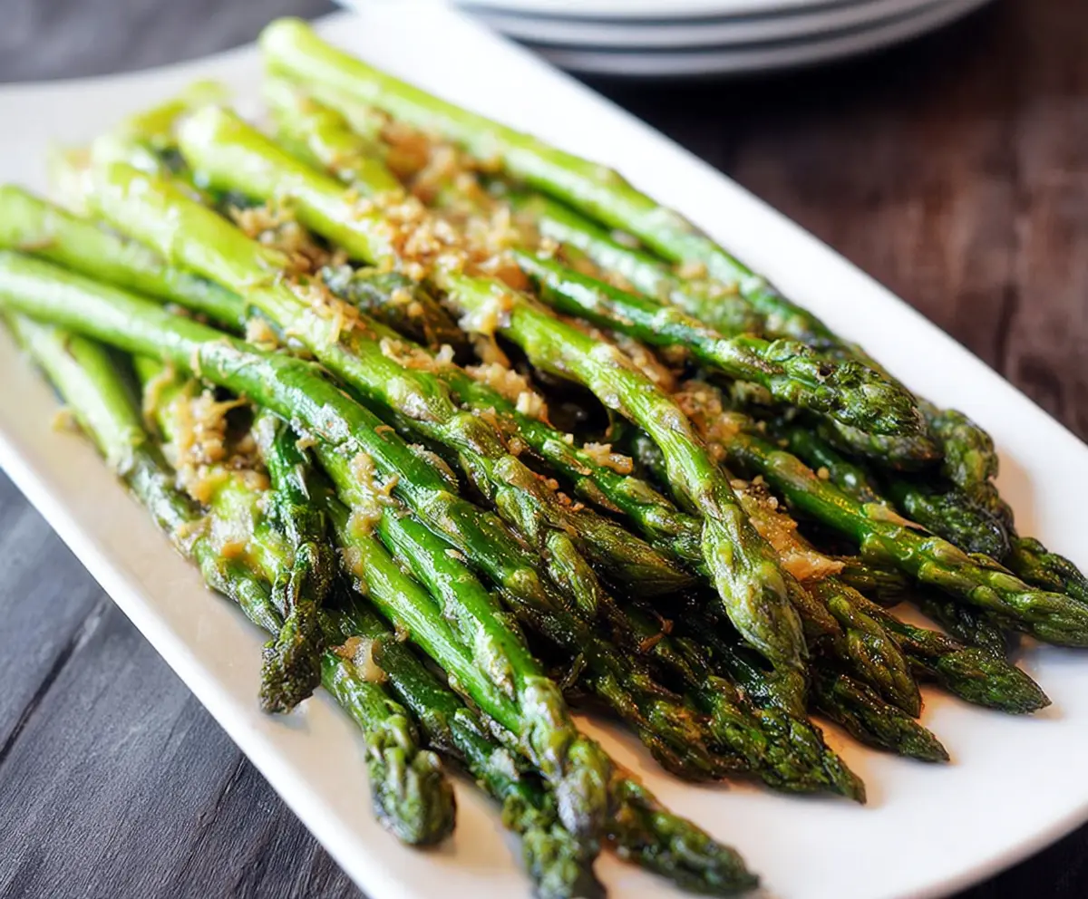Once they’re done, carefully remove the baking sheet from the oven. Transfer the roasted asparagus to a serving plate and enjoy them warm as a delicious side dish. They’re perfect for any meal!