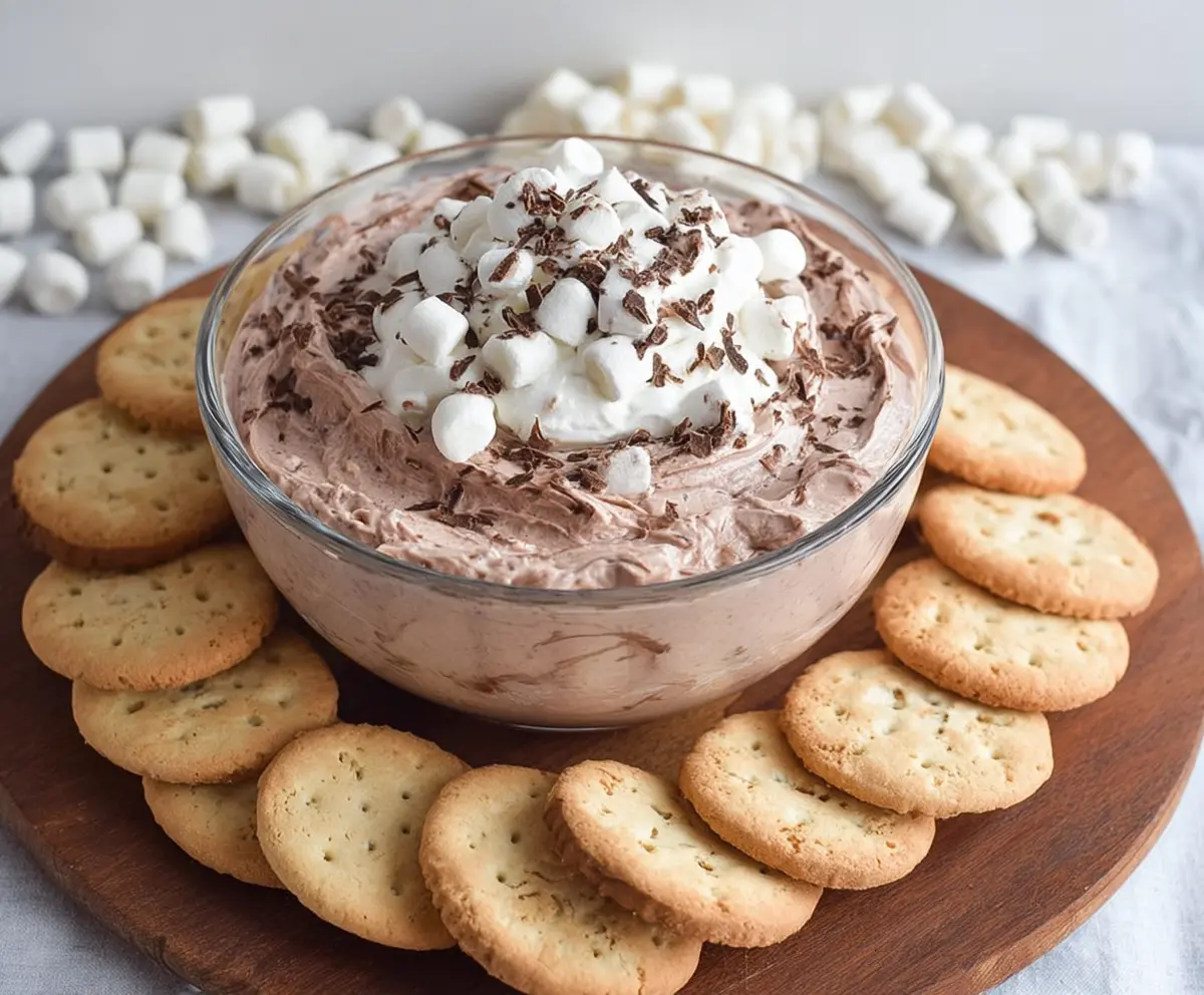 Serve immediately with round crackers or graham crackers. Dig in and enjoy each creamy, cocoa-filled bite of your delightful dip!