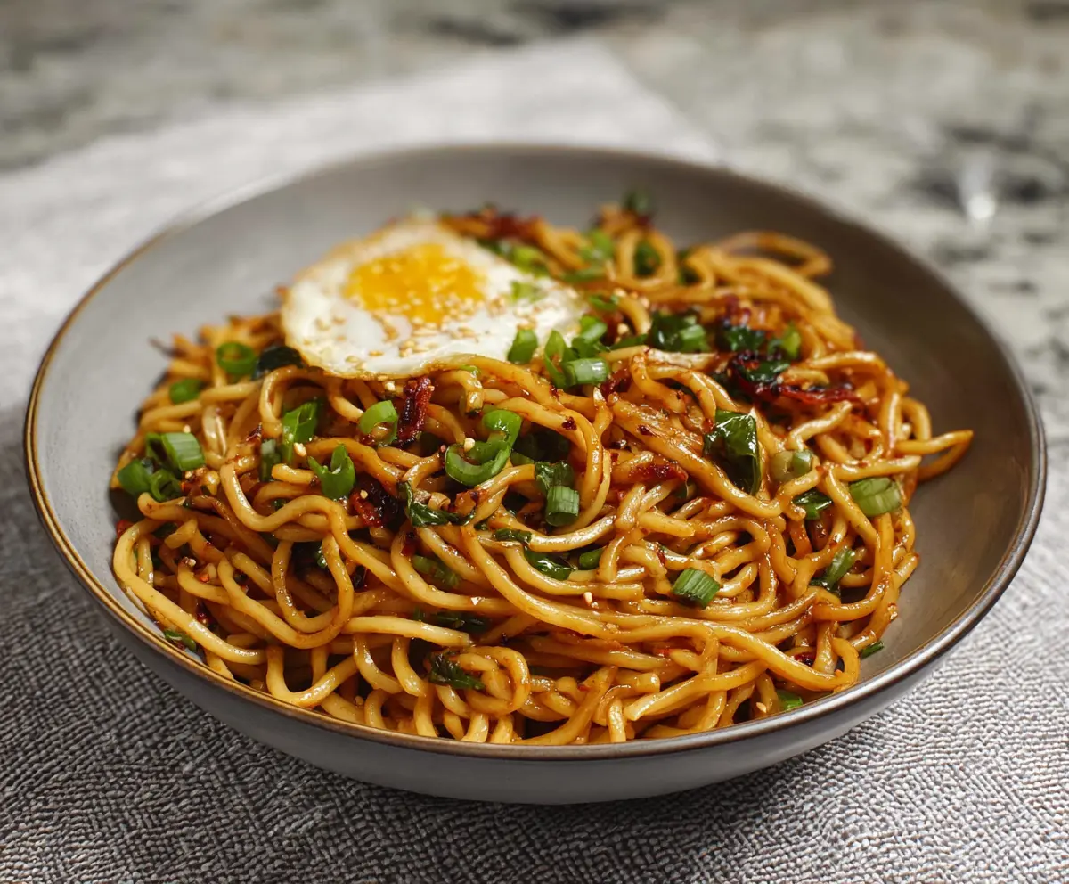 If you’d like an extra touch, fry a large egg sunny-side up in a separate small pan. This adds a beautiful layer of richness to your noodles!