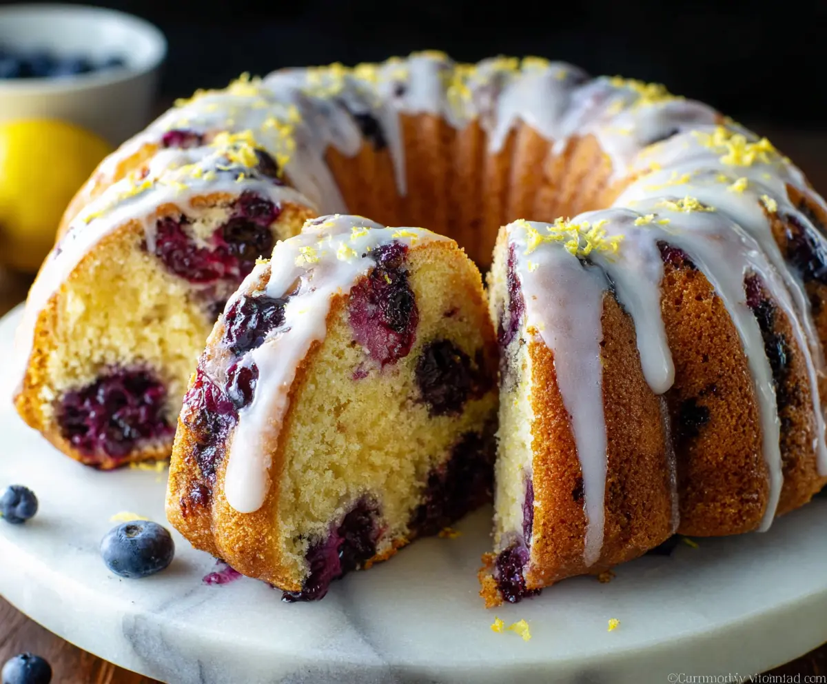 Once the cake is completely cool, drizzle the lemon glaze over the top. Now, it’s time to slice and enjoy this delightful Lemon Blueberry Bundt Cake, perfect for any occasion!