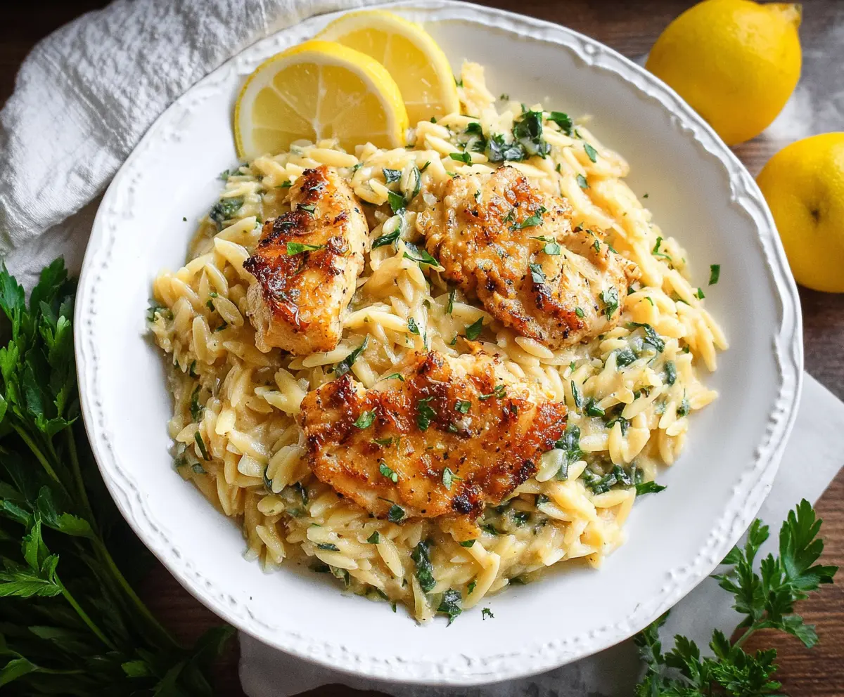 This Lemon Chicken and Orzo is a bright and zesty dish that’s sure to bring a smile. Tender chicken meets fluffy orzo, all brought together with a splash of lemon and fresh herbs.