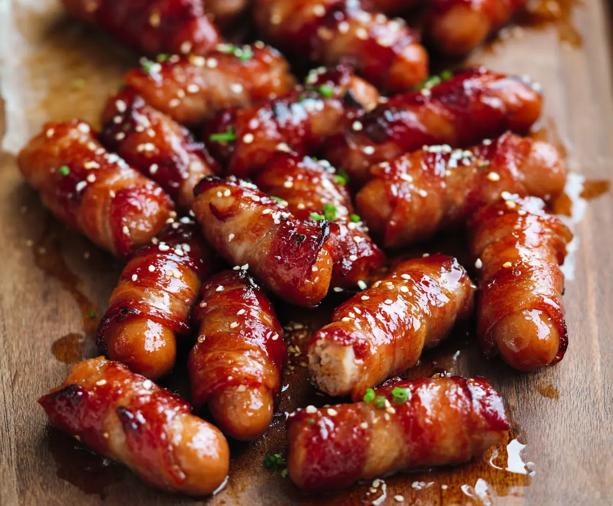 These tasty cocktail smokies wrapped in bacon and drizzled with sweet maple glaze are perfect for any gathering! They’re a fun finger food that everyone will love.