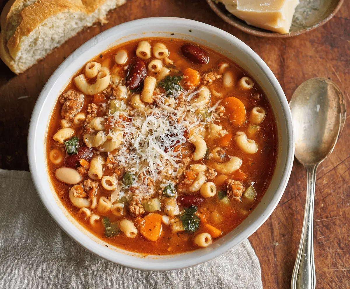 Your delightful Pasta e Fagioli Soup is ready to be served! Ladle it into bowls, sprinkle generously with grated Parmesan cheese on top, and enjoy alongside some crusty bread if you like. It’s sure to warm you from the inside out!