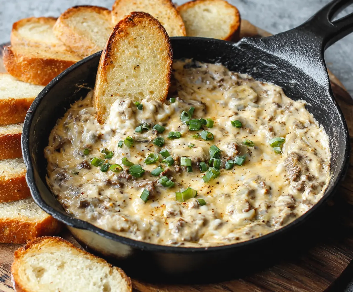Dig in and savor the flavors of your warm, cheesy, and hearty Philly Cheesesteak Dip!