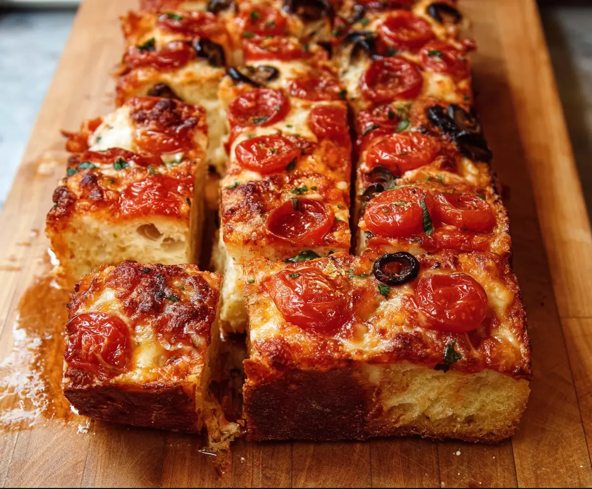 Once baked, remove the pizza bread from the oven and let it cool for a few minutes. Then slice it into squares, and serve warm. Don’t forget to have some extra pizza sauce or marinara on the side for dipping!