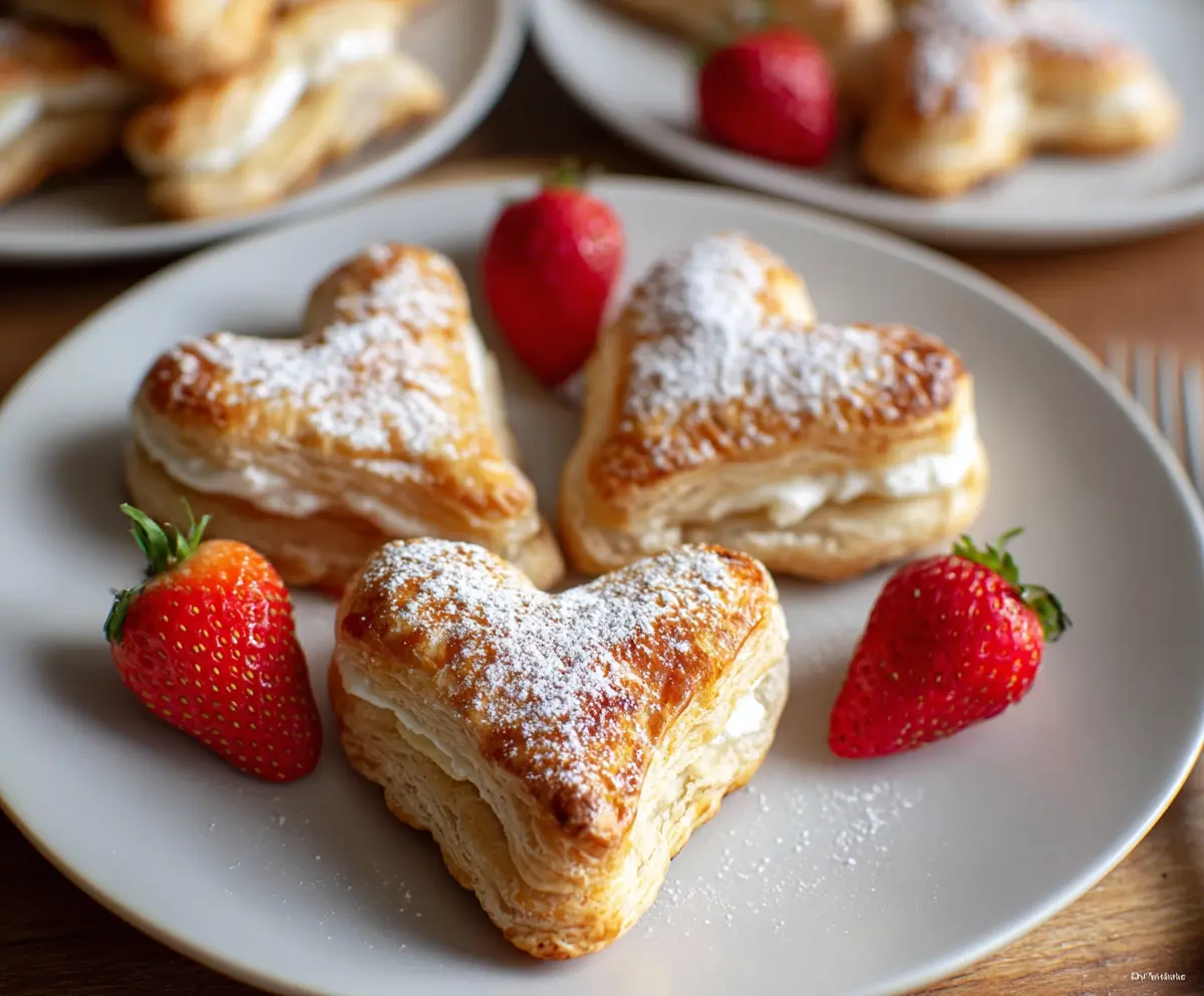 Serve your beautiful puff pastry hearts with fresh strawberries on the side or use them as a lovely garnish. Enjoy these delicate and delicious treats!
