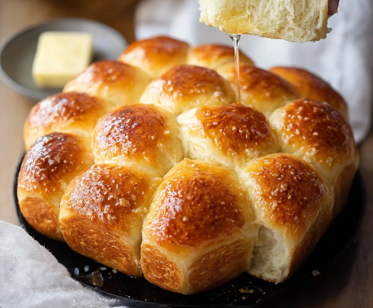 Once baked, remove the rolls from the oven and immediately brush with more melted butter for an irresistible shine and softness. Let them cool for 10-15 minutes before pulling them apart and serving warm.