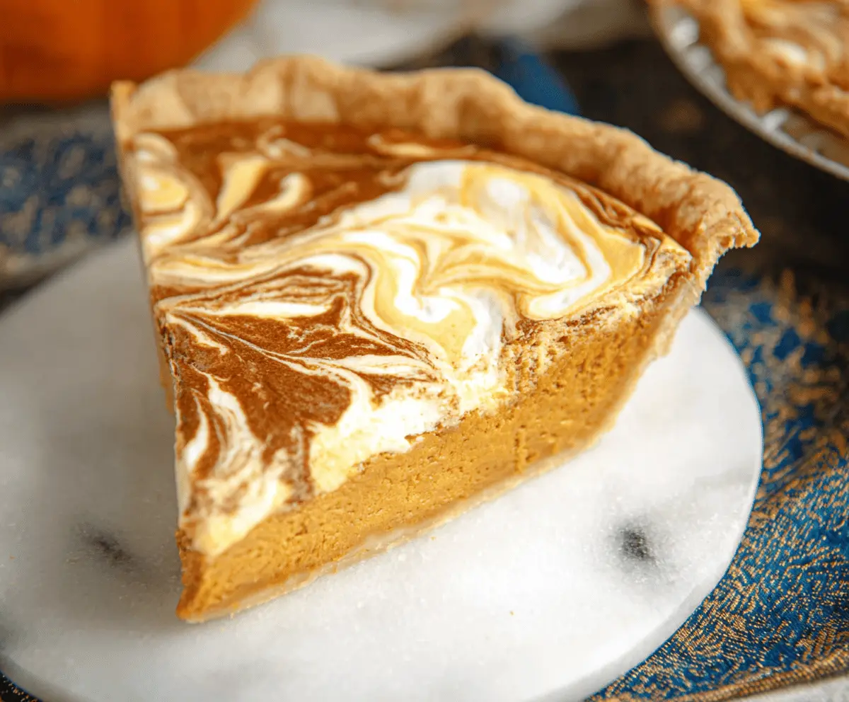 Now you have a creamy and spiced Pumpkin Cheesecake Swirl Pie that’s sure to impress!