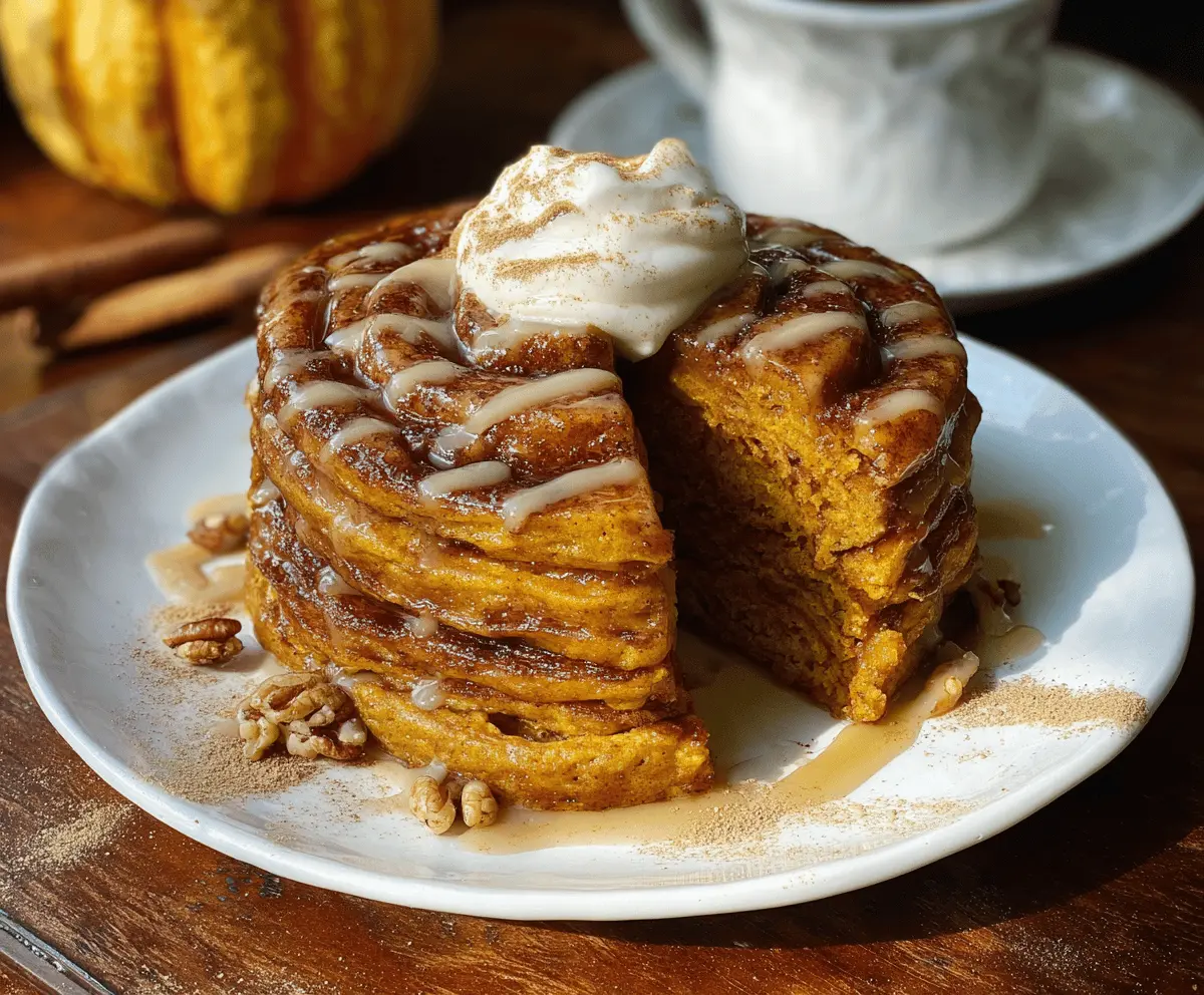 Dig in and savor the warmth of these Pumpkin Cinnamon Roll Pancakes—a delightful way to celebrate fall!