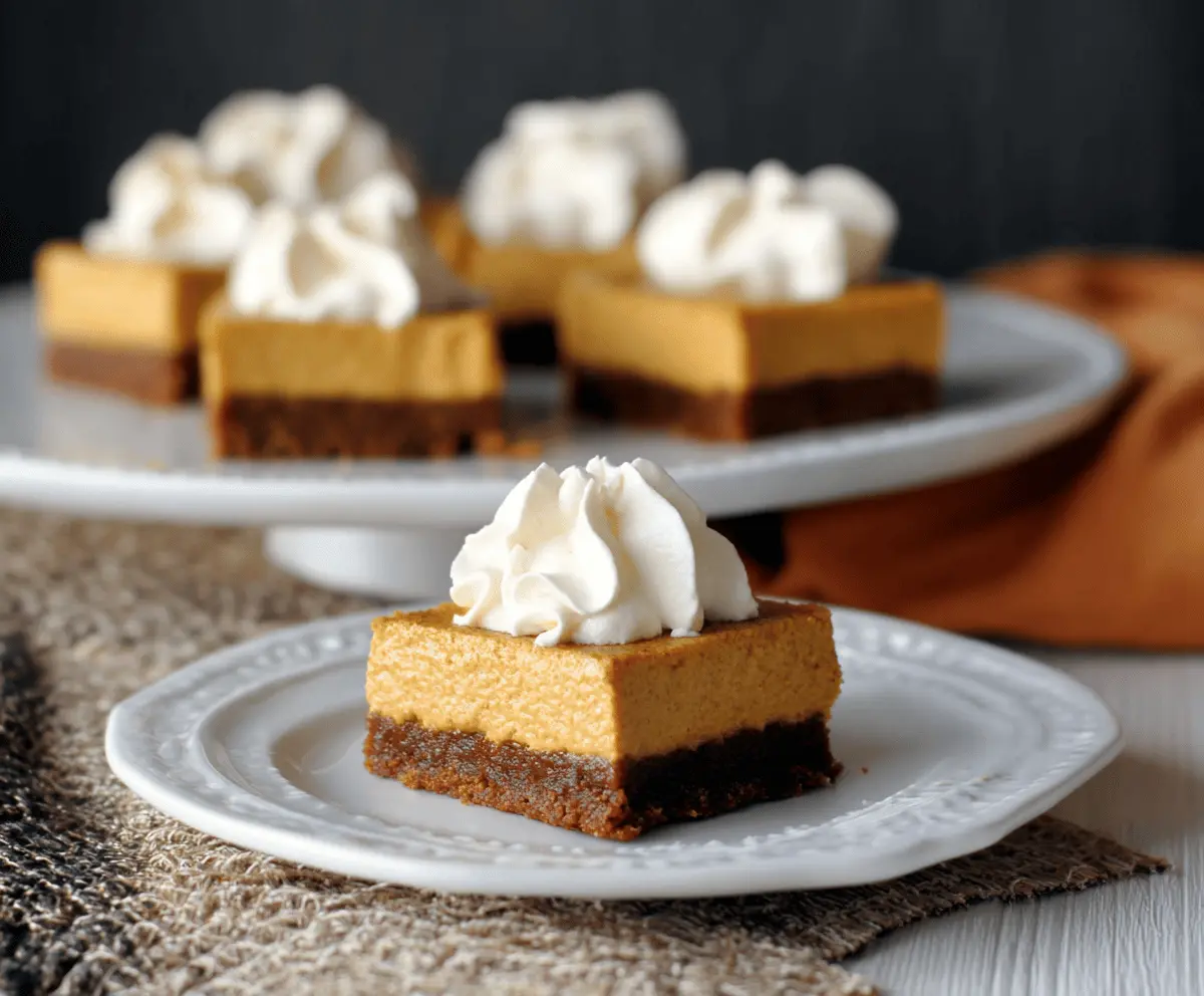 These Pumpkin Gingersnap Cheesecake Bars are a tasty treat that combines creamy pumpkin filling with a crunchy gingersnap crust. Perfect for fall gatherings!