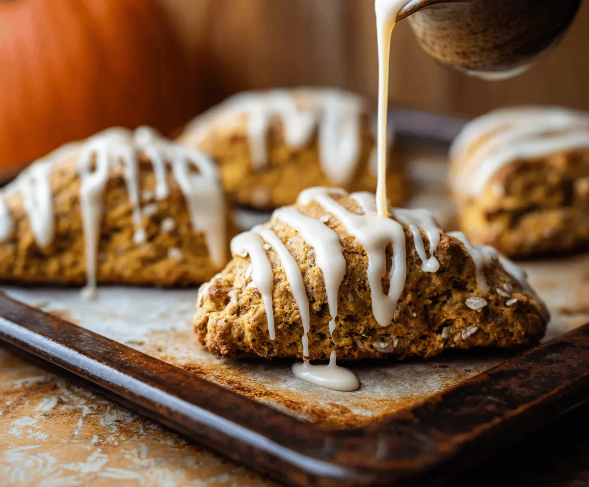 These pumpkin scones are soft and fluffy, bringing that warm fall flavor right to your kitchen. Topped with sweet maple icing, they are perfect for breakfast or a cozy snack!