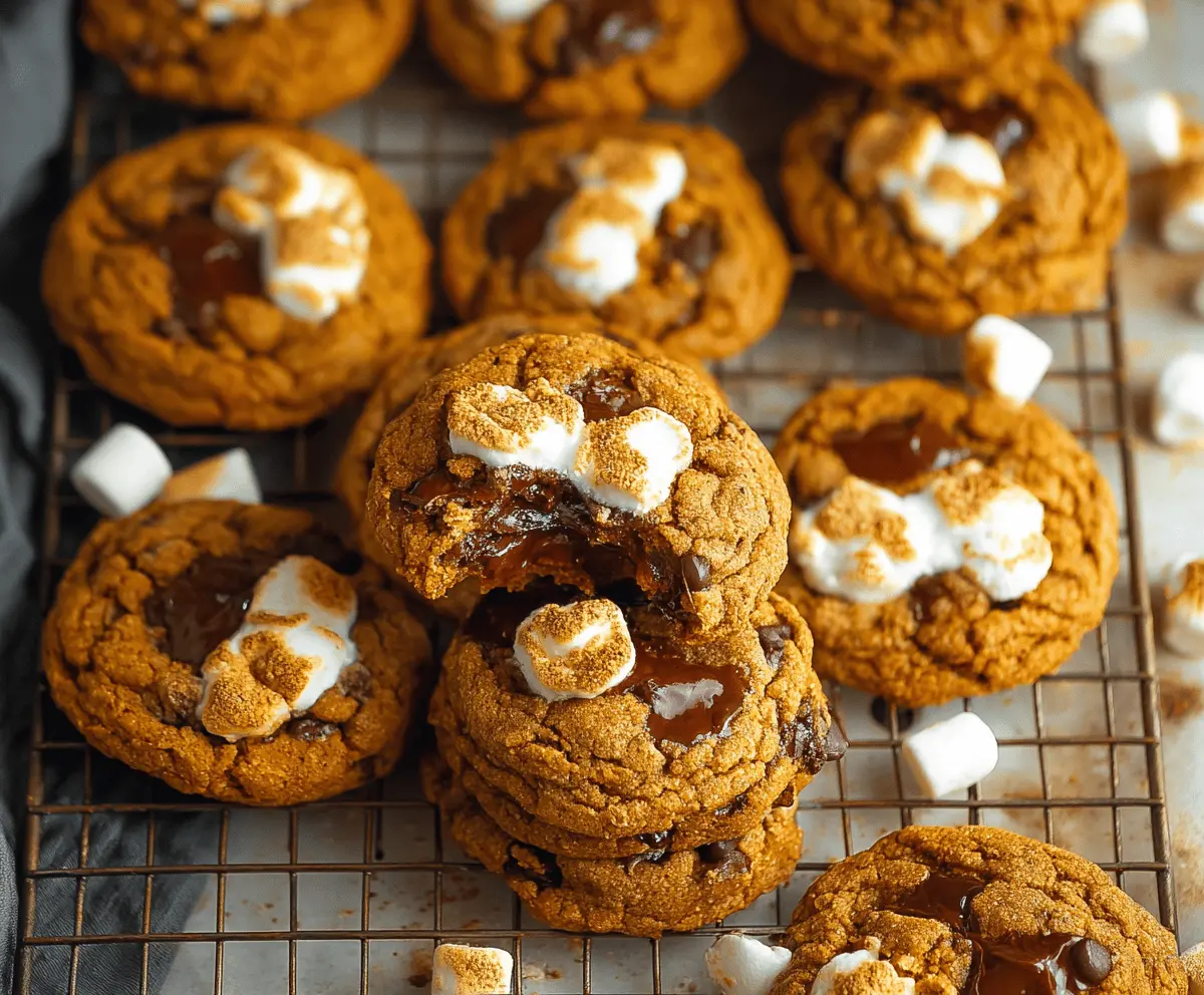These Pumpkin S’mores Cookies are a fun twist on the classic treat! Soft and chewy, they’re packed with pumpkin spice flavor, chocolate, and gooey marshmallows.