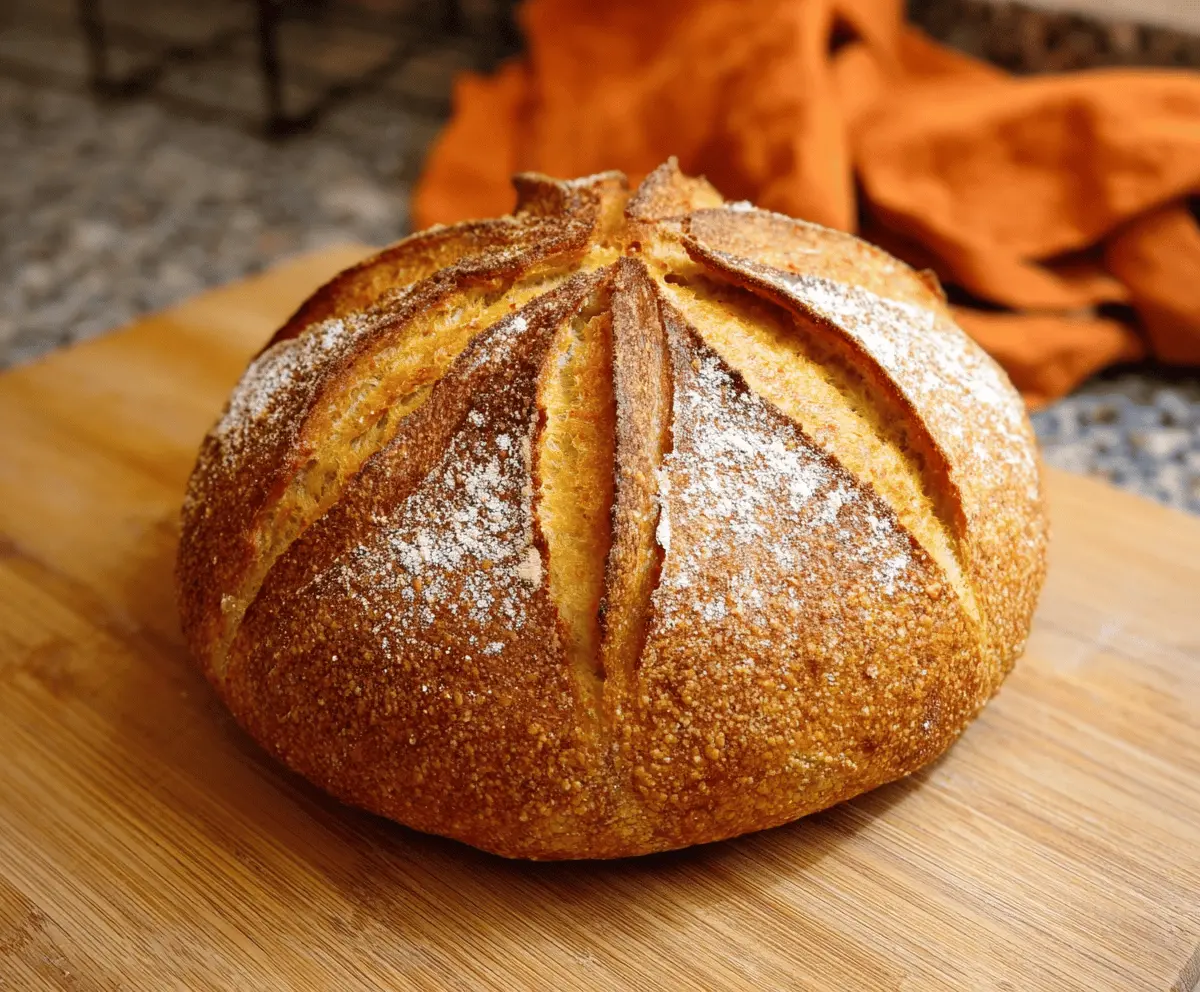 Enjoy your delicious Pumpkin Sourdough Bread, which has a beautiful golden crust and a hint of pumpkin spice. Perfect for toasting or enjoying fresh!