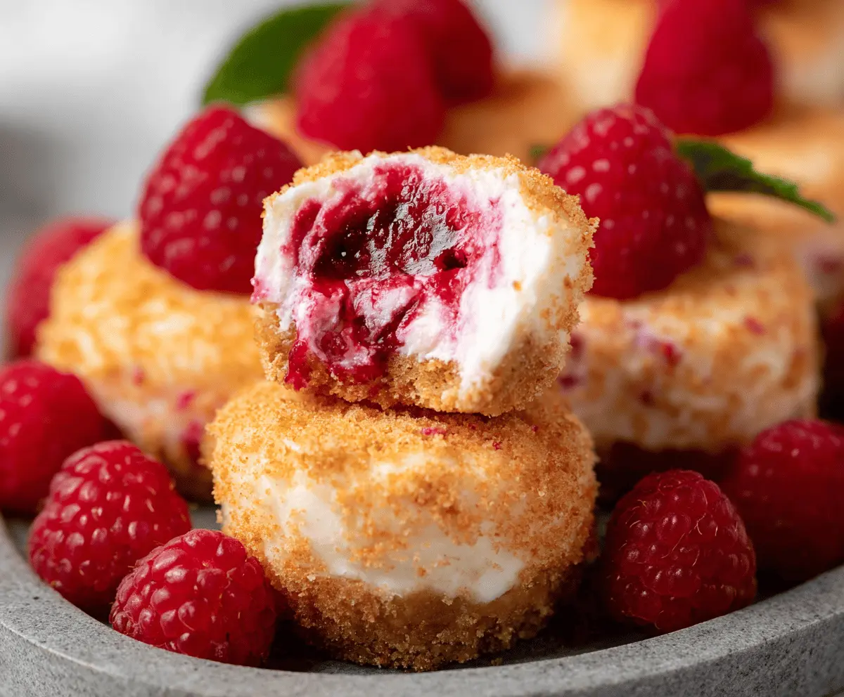 These no-bake Raspberry Cheesecake Bites combine creamy, tangy cheesecake with a sweet raspberry center and a crunchy graham cracker coating—for a delightful burst of flavor in every bite. Enjoy your sweet creation!
