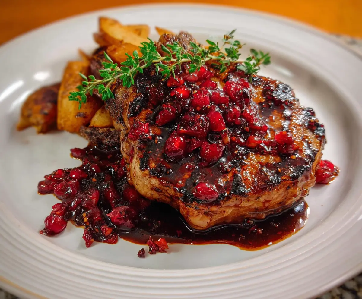 Carefully plate the pork chops, spooning any extra raspberry glaze over the tops. Garnish with fresh thyme sprigs and additional fresh raspberries for a lovely presentation. Serve alongside potato wedges or your favorite side dish for a complete meal.