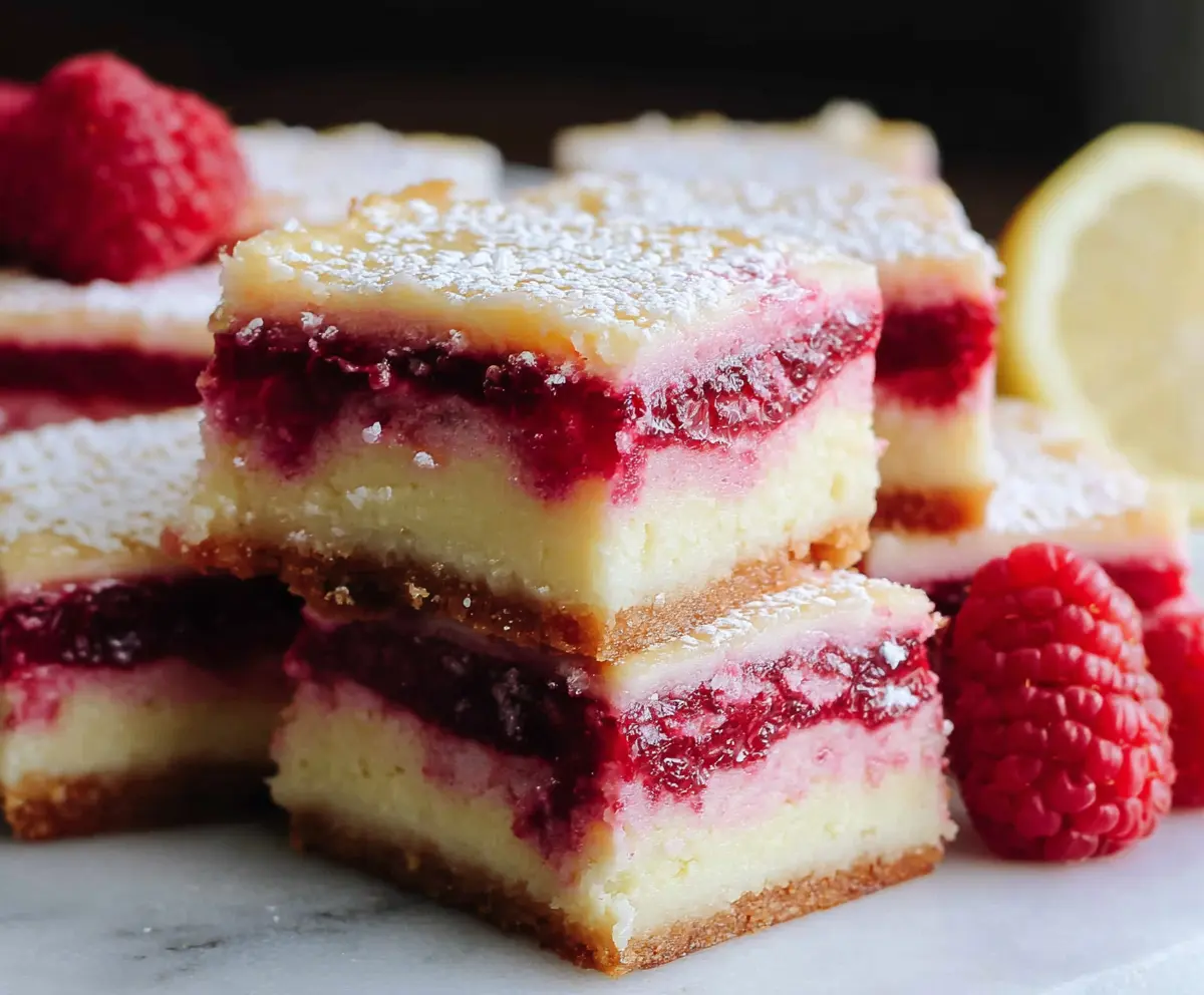 These Raspberry Lemon Cheesecake Bars are a tasty treat with a creamy filling and zesty flavor. The bright combo of sweet raspberries and tangy lemon makes every bite a joy!