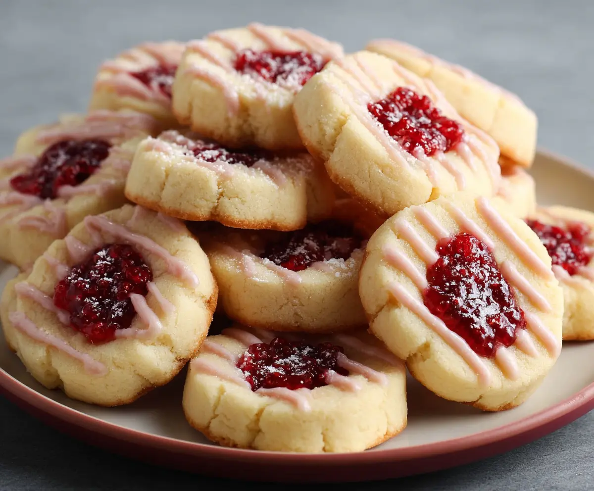 These Raspberry Shortbread Cookies are sweet, buttery, and filled with a burst of fruity goodness! The soft dough pairs perfectly with the tart raspberry filling.