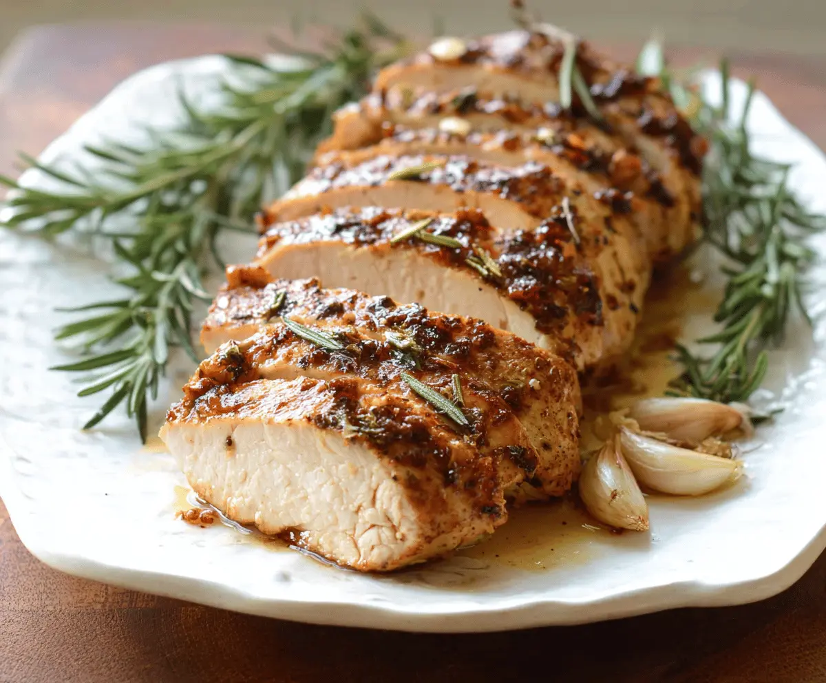 Your rosemary garlic turkey breast is ready to be served warm! Enjoy this vibrant, aromatic dish with your loved ones—it’s perfect for any celebration or a cozy family dinner.