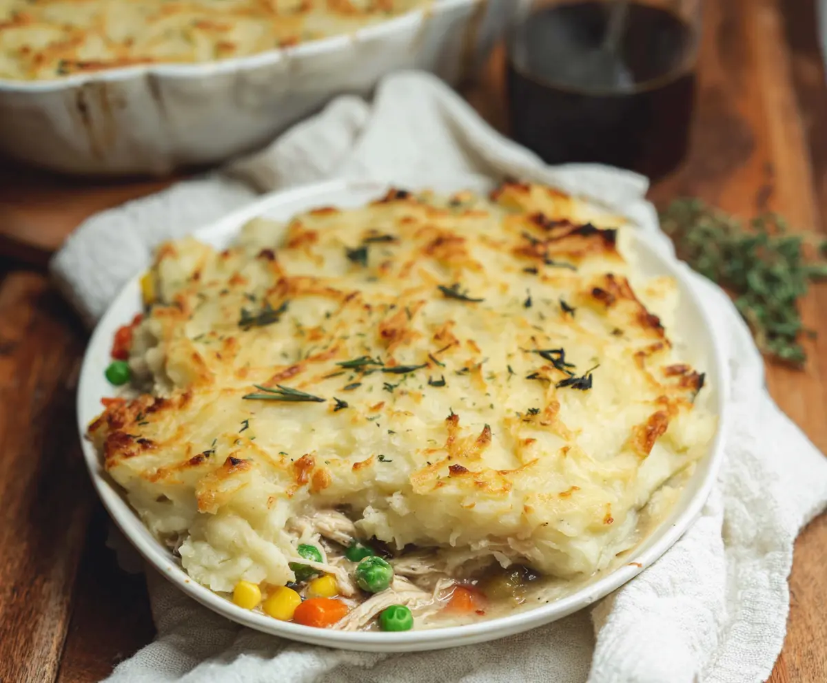 Absolutely! If you have leftover cooked chicken, it’s a perfect base for this shepherd’s pie. Just shred it into pieces to match the consistency of rotisserie chicken.